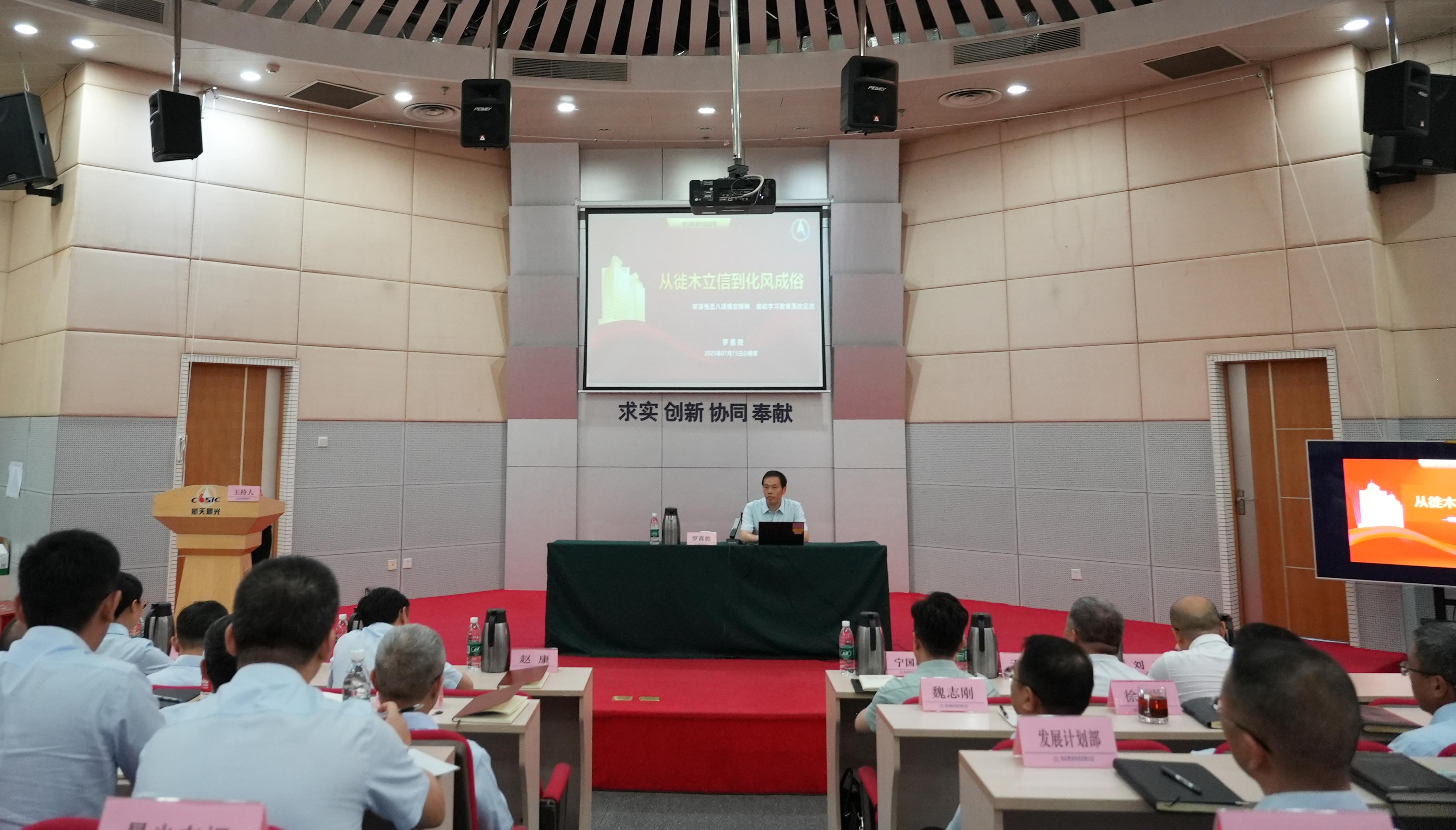 羅喜勝以《從徙木立信到化風(fēng)成俗 學(xué)深悟透中央八項規(guī)定精神 推動學(xué)習(xí)教育落地見效》為題,與黨員干部職工共同學(xué)習(xí)領(lǐng)會習(xí)近平總書記關(guān)于加強(qiáng)黨的作風(fēng)建設(shè)的重要論述和中央八項規(guī)定精神,引導(dǎo)黨員干部職工以優(yōu)良作風(fēng)凝心聚力、干事創(chuàng)業(yè),為打造“不一樣的航天科工”貢獻(xiàn)更多航天晨光力量。